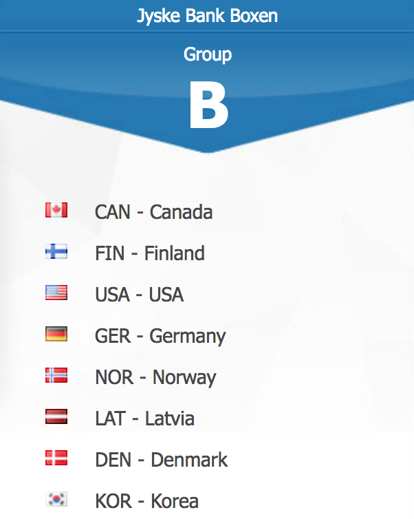 Датчане на домашнем первенстве очень постараются порадовать свою публику и побороться за выход в четвертьфинал. На прошлогоднем чемпионате мира датчане были 6-ми в группе, а вот на чемпионате мира 2016 заняв 4-е место в группе, вышли в четвертьфинал.