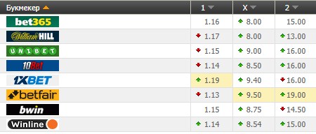 Здесь видно, как в разных конторах идет прогруз на противоположные варианты, а если изменения и есть, то они незначительны. Многие, при обнаружении такой картины, отбрасывают данный поединок и не делают на него ставку.