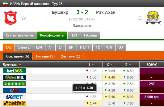 Возьмем для примера один из футбольных матчей чемпионата Ирана.