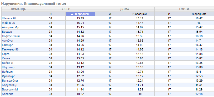 Многие упускают одну важную черту футбольного чемпионата Германии – это достаточно большое число совершаемых фолов в среднем за игру. Будет любопытно взглянуть на статистику совершаемых игроками немецких клубов фолов.