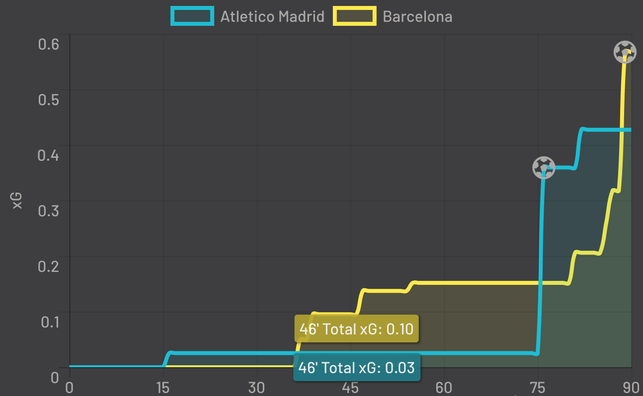 Первый тайм был похож на шахматный матч между Диего Симеоне и Эрнесто Вальверде. На поле сложился такой расклад, что атаки обеих команд были нейтрализованы и за весь тайм было нанесено лишь 3 удара по воротам и ни одного в створ.