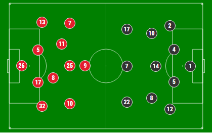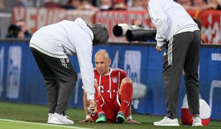 После нескольких бесперспективных атак хозяев Арьен Роббен оказался на земле. Голландец получил помощь от медицинского персонала и показал тренеру, что не может продолжить матч. Юпп Хайнкес заменил его на Тьяго Алькантару.