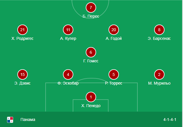 Панама же выставила любопытную тактику 4-1-4-1. Единственным форвардом был Перес.