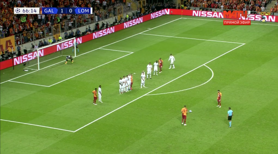 На 67-й минуте был назначен штрафной в 24 метрах от ворот «Локомотива» примерно на углу штрафной. Есть в составе «Галатасарая» Бельханда, который здорово исполняет штрафные, но на этот раз к мячу подошел Эрен Дердийок и пробил безупречно в угол ворот — 2:0.
