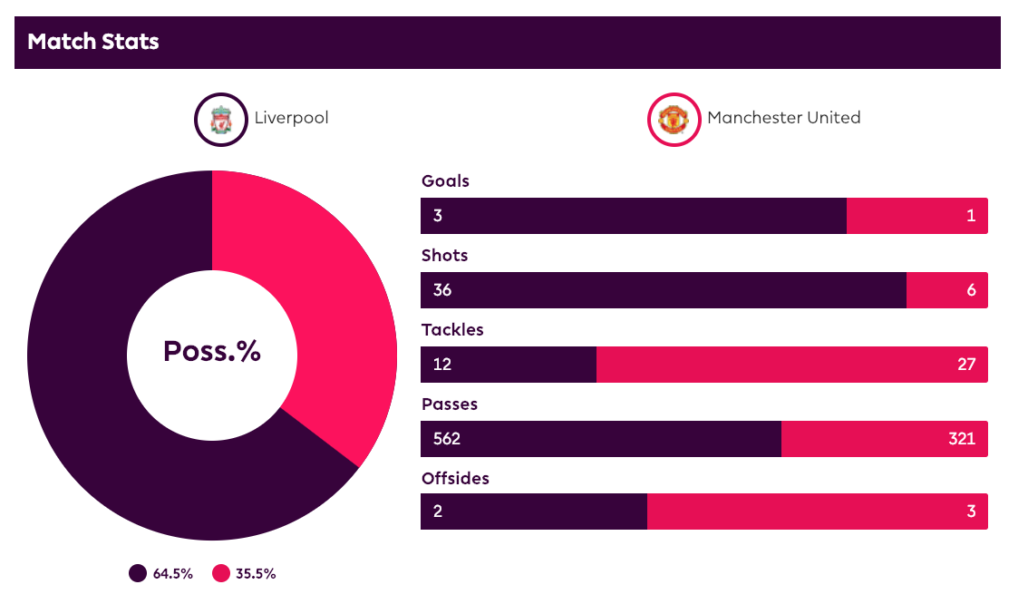 Внушительное доминирование команды Клоппа во владении мячом. Беззубая игра «МЮ» в атаке. Дубль вышедшего на замену Шакири и возвращение «Ливерпуля» на первое место.