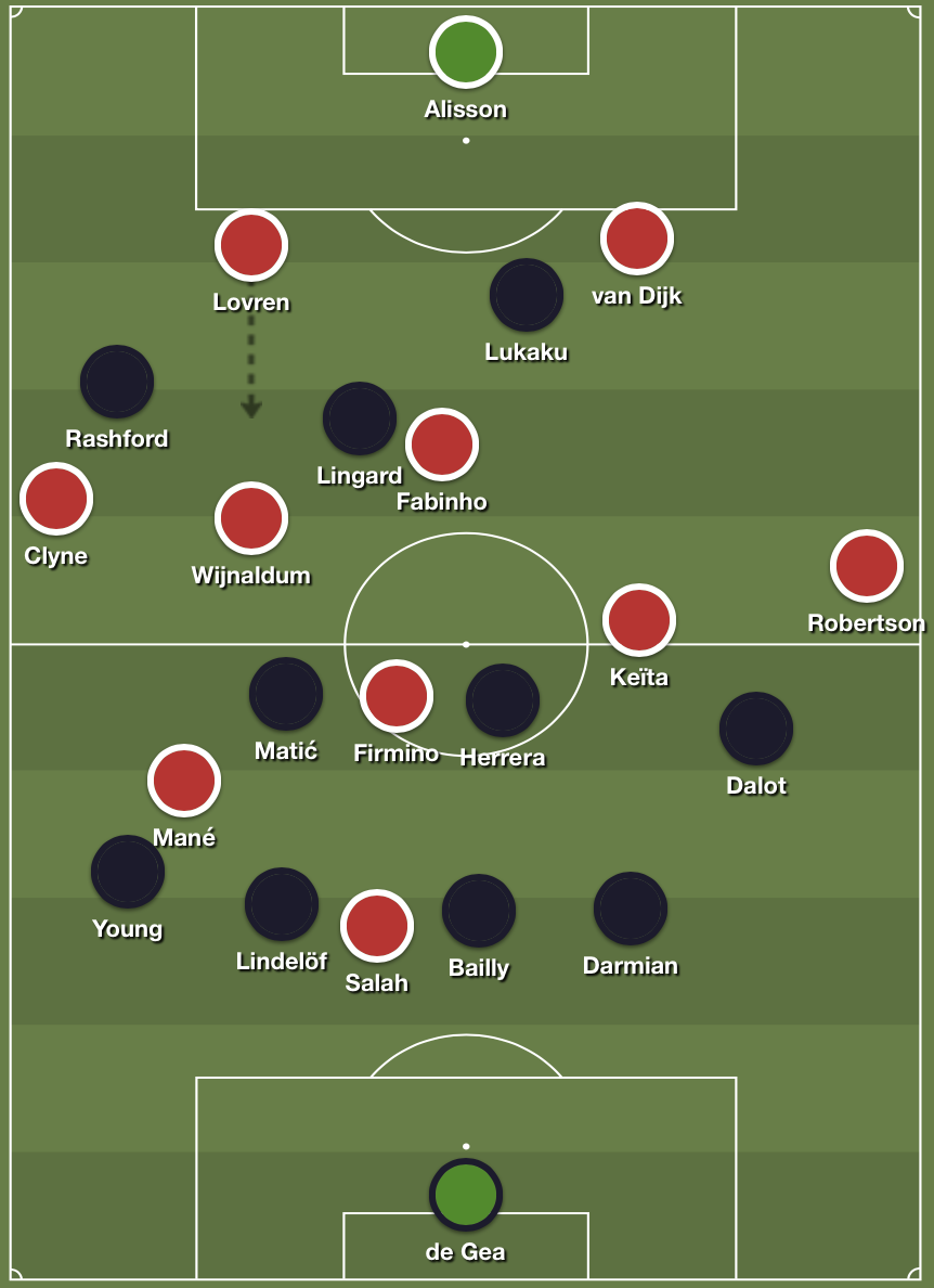 Такой явный акцент на правый фланг в атаке «Ливерпуля» позволял «Манчестеру» временами проводить опасные контратаки, поскольку Эррера оставался свободен и имел возможность доводить мяч до Лукаку.