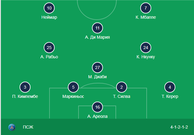 Тухель выставил на игру тактику 4-1-2-1-2. Она была в некотором смысле неожиданной, так как ПСЖ ею в последних матчах не играл. Да и в прошлом туре против ПСЖ на острие атаки был Кавани, сейчас же он провел весь матч на скамейке запасных. Впереди же оказались Неймар, и вышедший на поле после дисквалификации Мбаппе. Номинальным центровым форвардом стал Ди Мария, но он расположился ниже Мбаппе и Неймара. Дракслер получил травму и не сыграл в этом матче. Временами его не хватало.