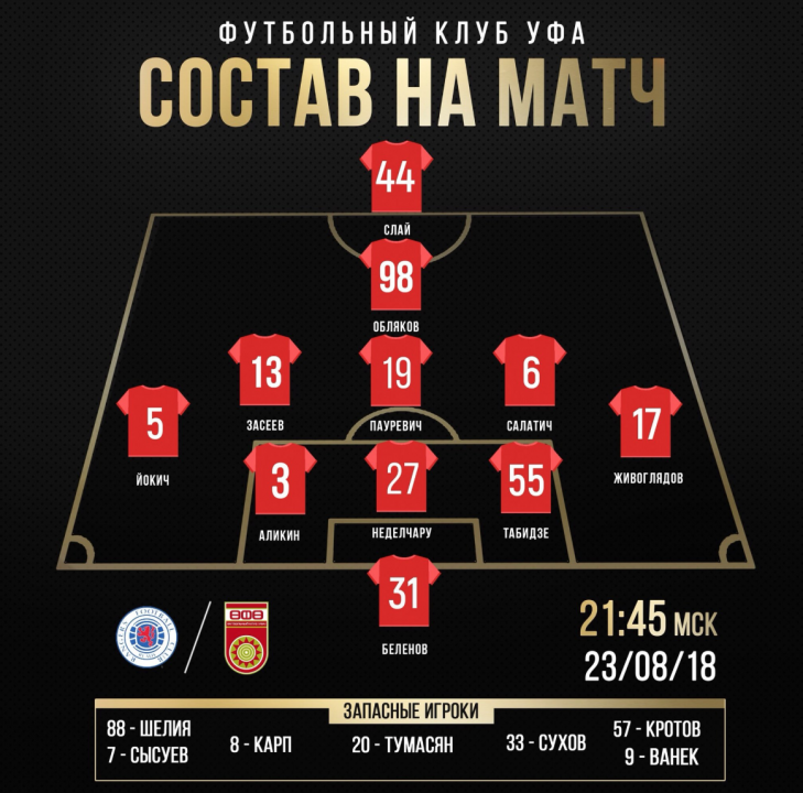 Обзор матча Рейнджерс — Уфа 1:0, 23.08.2018