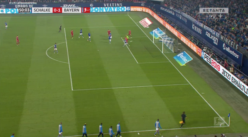 В итоге, за весь тайм у футболистов «Шальке» был лишь один полумомент — несильный удар Ди Санто из пределов штрафной. «Бавария» с Ковачем стала более прагматичной и не старалась забить как можно больше, но преимущество мюнхенского клуба было ощутимым: по владению мячом, угловым, ударам, борьбе на втором этаже, дриблингу, точность передач.