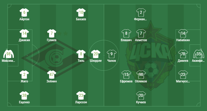 Что касается армейцев, штаб Виктора Гончеренко столкнулся с рядом кадровых проблем, главной из которых, разумеется, стало отсутствие Арнора Сигурдссона. Впрочем, в обороне не хватало и Виктора Васина. Зато свой шанс в стартовом составе получил Дмитрий Ефремов, смог сыграть и получивший повреждение носа в поединке с «Сочи» главная ударная сила ЦСКА Фёдор Чалов.