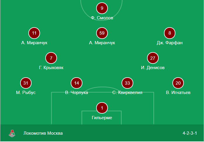 Если Кононов решил кардинально сменить схему, то Семин свою привычную схему 4-3-2-1 менять не стал. Более того стартовый состав «Локомотива» был практически идентичен поединку прошлого тура с «Уралом». Единственное изменение Семин сделал в защите, сменив Хеведеса на Игнатьева. А так Семин остался верен себе, доверившись тому составу, который играл в прошлом матче.