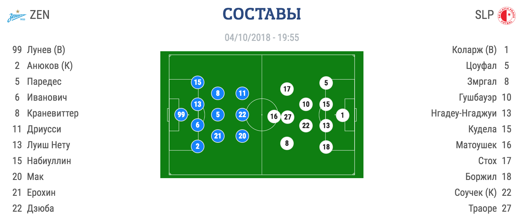 Внушительное игровое преимущество футболисты «Славии» не смогли преобразовать в положительный для себя результат. «Зенит» уступил по всем статистическим показателям, 2-13 по угловым, 5-26 по ударам. Но свой редкий момент «зенитовцы» реализовали.