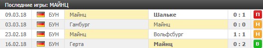 «Ноль-пятые» не опускаются ниже 16-ой позиции по той причине, что не самым лучшим образом играют последние две команды чемпионата. Майнц в последнее время немного встрепенулся, сумел до последнего тура три раза не проиграть, набрав 5 пунктов, но в крайнем поединке проиграл Шальке со счетом 0:1.