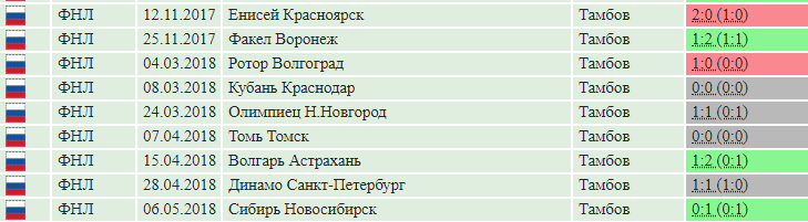 Но в последнее время «Тамбов» стал демонстрировать неплохие результаты и на выезде, о чем ярко свидетельствуют ниже следующие результаты.