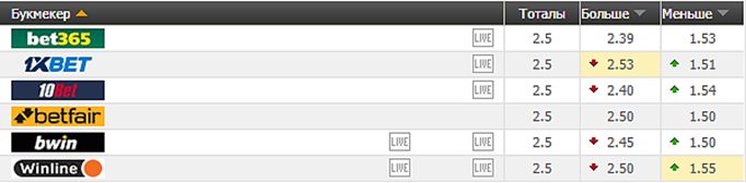 Ни по одному виду пари не наблюдается сильный прогруз. Заметно небольшое падение коэффициентов в рамках «тотал больше забитых голов». Аналитики букмекерских контор решили, что голов много не будет и выставили откровенно высокие коэффициенты на «ТБ 2.5 голов», некоторые бетторы решили поставить на «ТБ 2.0», так сказать сыграли с подстраховкой против мнения аналитиков бк.