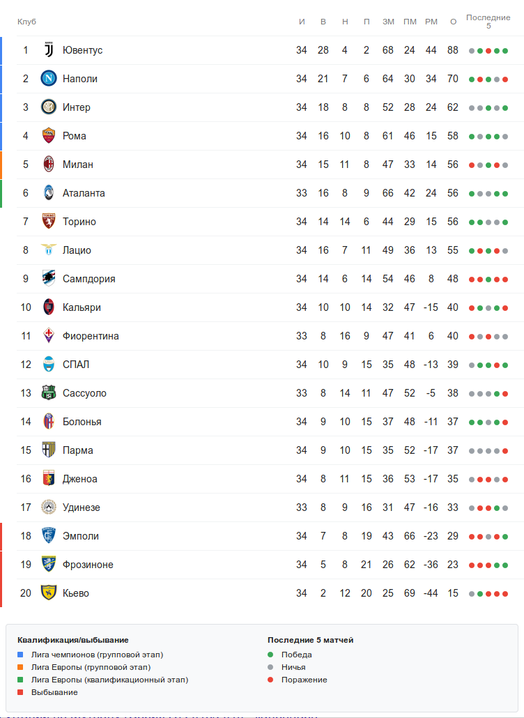 Предыдущие матчи 34-го тура стали подарком для «Аталанты»: его прямой конкурент в борьбе за 4-е место, «Милан», проиграл «Торино», так что у всех 3-х команд сейчас по 56 очков, но у «богини» есть игра с «Удинезе» в запасе.