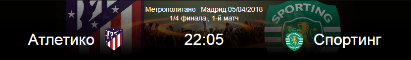 В четверг, 5 апреля в 22:05 состоится первый матч ¼ финала пары четвертьфтналистов «Атлетико Мадрид» и лиссабонского «Спортинга». Поединок состоится на арене «Ванда Метрополитано», в Мадриде.