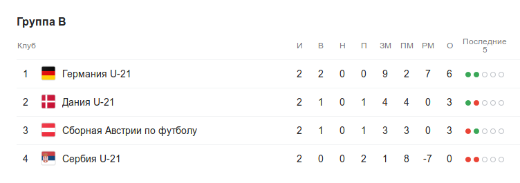 Немецкая сборная обыграла Данию 3:1 и Сербию со счётом 6:1, так что по разнице забитых и пропущенных голов +7 пока занимает первое место во всей финальной части молодёжного Чемпионата Европы, несмотря на то, что в последних 5-и матчах (не только на Евро) она не только забивала, но и пропускала.