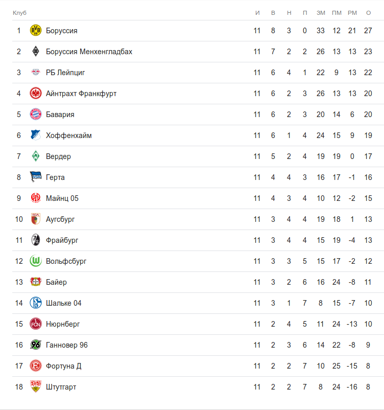 Двенадцатый тур бундеслиги «львы» начнут на тринадцатом месте в турнирной таблице, где у них одиннадцать очков — это всего на два больше, чем у шестнадцатого «Ганновера», что находится в зоне вылета. На одно очко меньше у «Шальке» и «Нюрнберга», они проведут очную встречу в субботу, и кто-то из них может обогнать леверкузенцев.