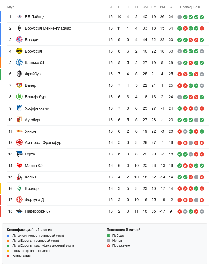 Команда из одноимённого города завершила 16-й тур на 8-м месте в турнирной таблице и оказалась всего в одном очке от 6-й строчки, которую занимает «Фрайбург», проигравший дома «Баварии» со счётом 1:3. Теперь положение может измениться.