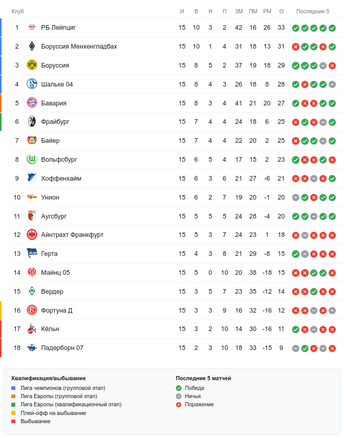 Благодаря этому «Боруссия Дортмунд» оказалась всего в 2-х очках от «Боруссии Мёнхенгладбах», но та теперь на 2-м месте. От первой строчки команда Люсьена Фавра отстаёт на 4 очка, а сегодня может сократить расстояние до одного очка.
