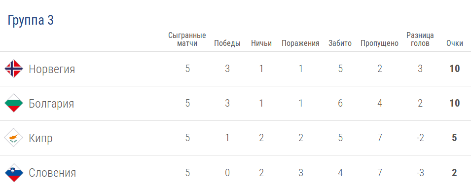 Норвежцы забили пять и пропустили два мяча, так что разница у них +3, тогда как болгары, с их шестью забитыми и четырьмя допущенными, имеют +2. Получается, что по окончанию оставшегося тура в следующий дивизион выйдет та команда, которая больше забьёт и меньше пропустит — та, у которой будет большая разница голов.
