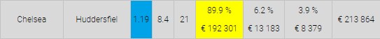 Изучая денежные потоки, мы видим, что почти 90% проставленной денежной суммы поставлено на викторию хозяев.