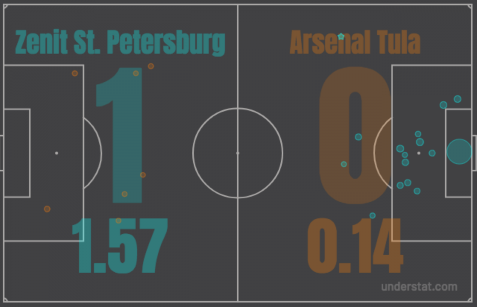 В матче против тульского «Арсенала» футболисты «Зенита» показали еще больший xG, равный 1,57. Но забить удалось лишь один гол. По словам игроков, тяжело было взламывать оборону соперника, который весь оборонялся 8-9 футболистами.