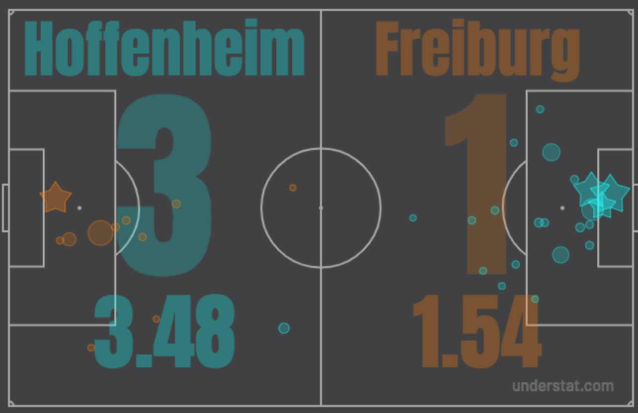 «Фрайбург» показал удручающую игру в обороне. Посмотрите как «Хоффенхайм» разрывал оборону «Фрайбурга» — xG «Хоффенхайма» равнялся 3,48.