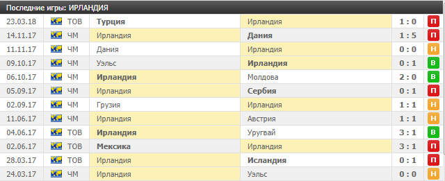 И есть еще один момент. Ирландцы проиграли две встречи подряд: сперва со счетом 1:5 датчанам, а затем в товарищеской игре туркам со счетом 1:0. А ведь подопечные Мартина имеют крайне боевой характер, и, когда сборная допускает несколько осечек подряд, то на основе своего характера и зашкаливающих эмоций даже не в официальной встрече могут дать мощный бой сильному сопернику. В прошлом году, когда ирландцы летом проиграли сперва исландцам, а потом мексиканцам, то в следующей игре переиграли со счетом 3:1 сам Уругвай.