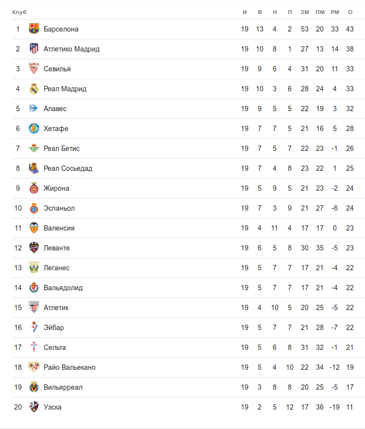 Представляющая Страну Басков команда пока находится выше всех остальных клубов из своего региона. Она опережает «Хетафе» на четыре очка, а от «Реал Мадрида» вместе с «Севильей», что занимает третье место, отстаёт всего на одно.