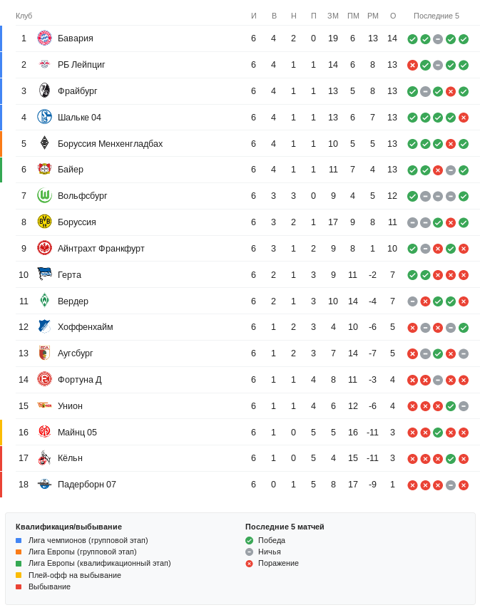 После завершения 6-и туров 9-е место занимает «Айнтрахт», у которого разница забитых и пропущенных голов составляет +1, тогда как «Герта» имеет −2, а франкфуртский коллектив опережает берлинский как раз на 3 очка.