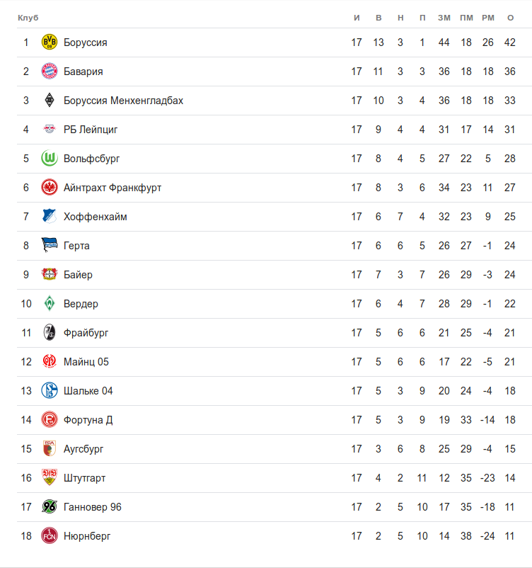 Перспективы «Баварии» на ближайшие два тура ясны: если она обыгрывает «Хоффенхайм» и «Штутгарт», а «Дортмунд» проигрывает «РБ Лейпцигу» и «Ганноверу», то, в зависимости от счёта в каждом из четырёх матчей, занимает первую строчку — сейчас разница голов +8 против +16 при восемнадцати пропущенных у тех и других.