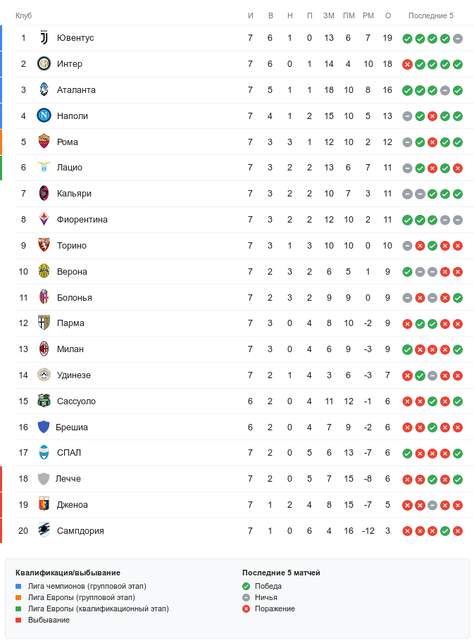 В результате этого «Ювентус» отрывается от «Интера» на одно очко и остаётся единственной командой в Серии А, которая ни разу не проиграла в этом сезоне, несмотря на не самую крупную разницу забитых и пропущенных голов: +7. Хотя больше, чем подопечные Маурицио Сарри, в этой кампании забила только другая тройка участников чемпионата из верхней четвёрки.