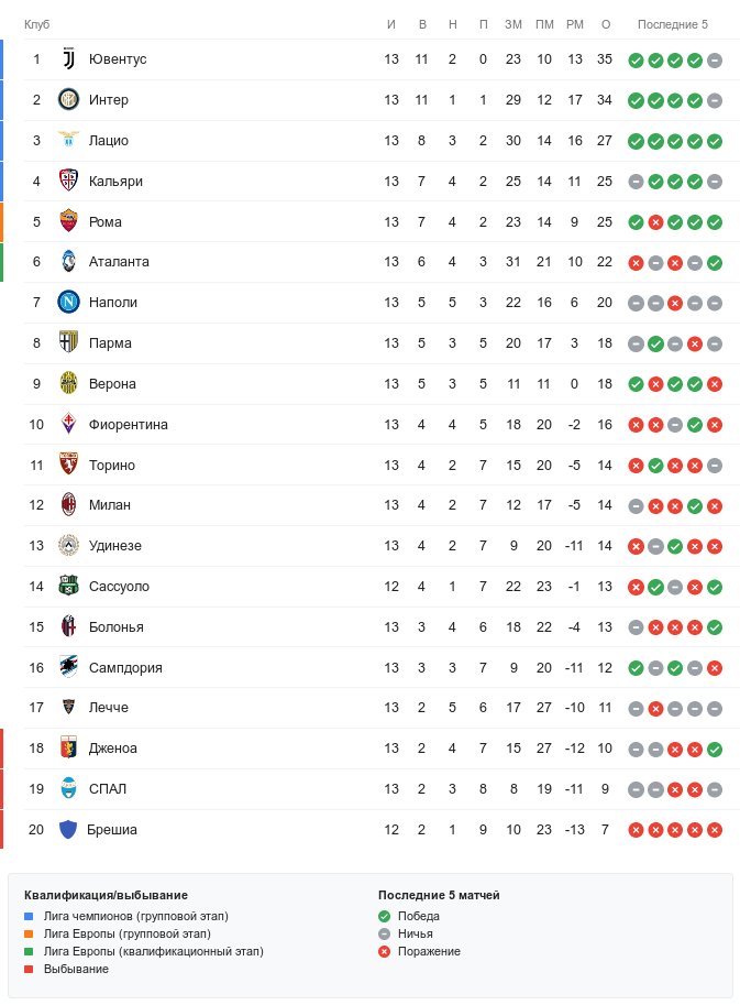 Первый зимний матч в итальянской Серии А проведут туринский «Ювентус» и «Сассуоло» — действующий чемпион страны примет команду, которая занимает 14-е место в турнирной таблице и после 13-и туров отстаёт от него на 22 очка.