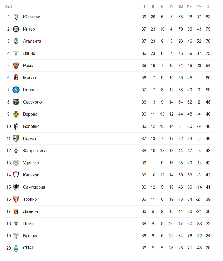 Римская команда начнёт матч среды с 4-го места в турнирной таблице. Она давно отстала от туринского «Ювентуса», так что теперь даже не догонит его. Хотя команда из Турина тоже ещё не сыграла в этом туре, она досрочно стала чемпионом Италии, оторвавшись от миланского «Интера» на 4 очка — тот в одном оставшемся матче сможет заработать только 3 очка.
