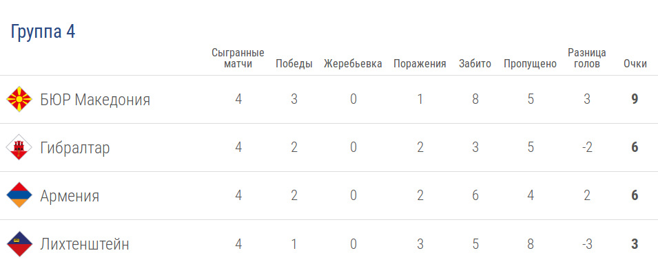 Гибралтар, если не считать недоразумения в игре с Арменией, остальные два из трёх забитых голов оформил именно в ворота Лихтенштейна, когда тот приезжал погостить на самый юг Пиренеев после домашней победы 2:0. Есть большие сомнения в том, что южане наберут хотя бы одно очко в ближайших двух турах, но «красно-синим» от этого не легче.