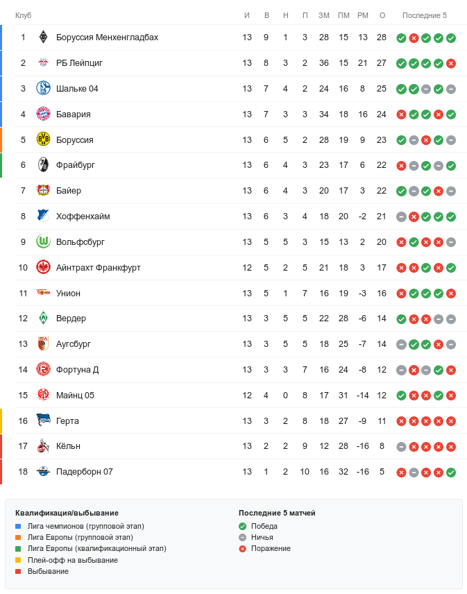 Если франкфуртский «Айнтрахт» одержит победу над «Майнцем», то завершит 13-й тур на 9-й строчке, хотя по очкам сравняется с «Вольфсбургом» — но как по разнице мячей, так и просто по количеству забитых обойдёт конкурентов за выход в еврокубки.