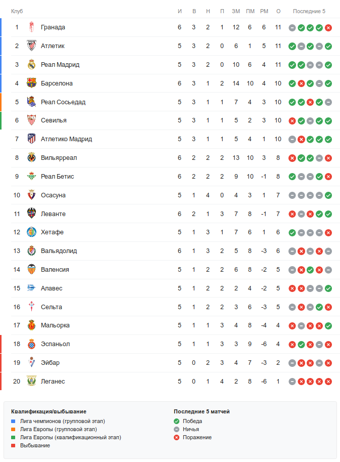 Перед матчами среды мадридская команда занимает 7-е место в турнирной таблице, хотя на самом деле её дела хороши: отставание от первой строчки составляет всего одно очко, так что в случае победы гости могут забраться на вершину таблицы.