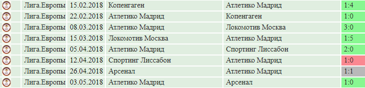 Команда Диего Симеоне обладает самой мощной обороной испанской примеры и также мощно выступает в Лиге Европы. Даже «Арсенал» в двух матчах сумел забить только один гол. Также только один гол за игру забивали «Спортинг», «Локомотив» и «Копенгаген». Все это следует нам учесть при выборе ставки на этот матч.
