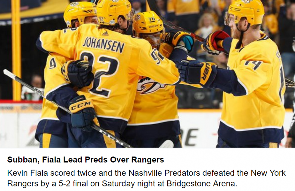 Нэшвилл в отличии от соперника уверенно организовал игру в обороне и чем-то удивить Хищников весьма проблематично. Суббан хорош как в защите, так и в атаке. вообще команда показывает достаточно целостный хоккей и заслуженно входит в лидирующую группу Западной конференции. Для меня Нэшвилл фаворит этого матча.