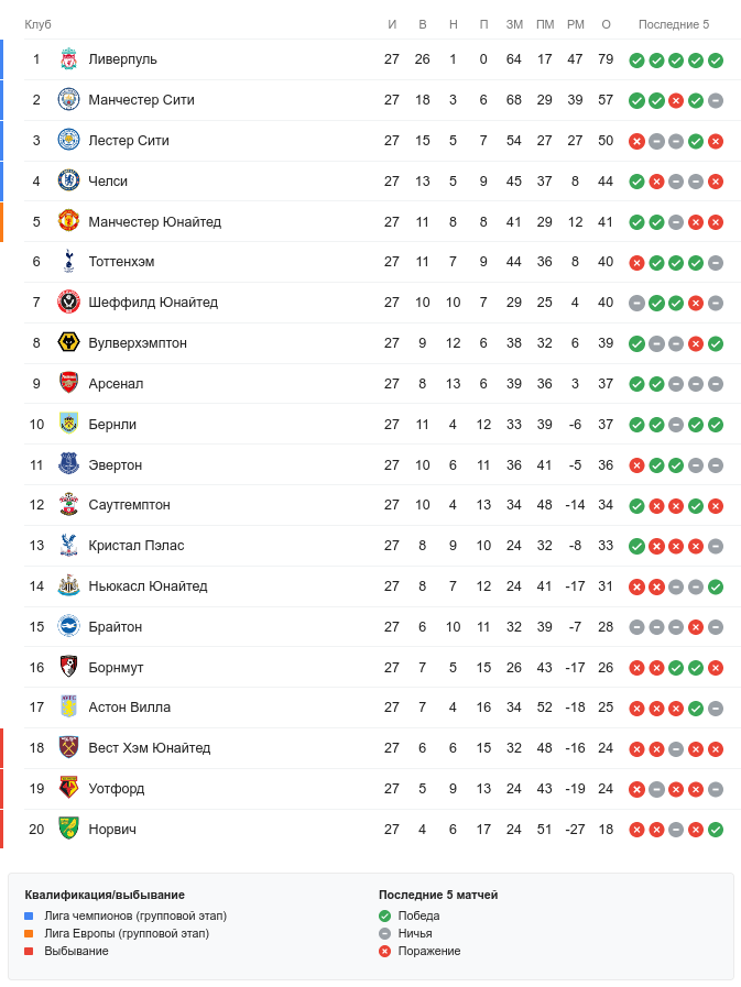 До окончания сезона ещё достаточно времени, чтобы «Лестер Сити» успел вылететь не только из верхней четвёрки, то и из верхней пятёрки и гарантированно потерял место на групповом этапе Лиги чемпионов. Впрочем, от того же «Манчестер Сити» команда сейчас отстаёт только на 7 очков.