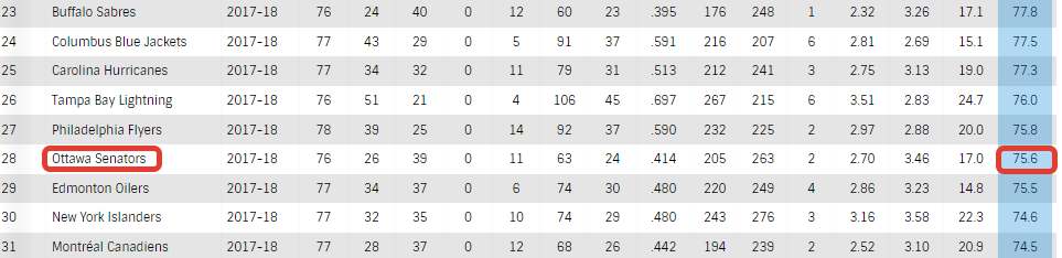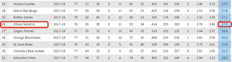 Оттава проиграла 6 матчей подряд, пропустив в них 28 шайб (в среднем 4,7 шайбы за матч). Но сейчас для Оттавы такой период, когда каждое поражение можно оценивать как победу. Такой парадоксальный вывод исходит из того, что поражения приближают Сенаторов к лучшему выбору на драфте 2018. Ведь чем ниже место в турнирной таблице, чем более ранний номер выбора на драфте получает команда.