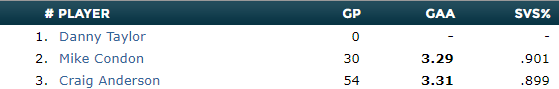 Еще одной ярко выраженной проблемой Оттавы является игра вратарей. В прошлом сезоне Крейг Андерсон демонстрировал феноменальную надежность, а Майк Кондон был отличным его бэкапом. В этом сезоне оба сыграли крайне слабо.