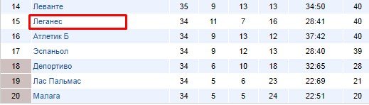 Вот так играет этот чисто домашний коллектив. Являясь представителем небольшого городка, «Леганес» сильно и мотивированно борется на родном поле, а вот на выезде, когда фактор домашнего поля уже не действует, результаты сразу же резко идут вниз. А тут еще исчез и еще один сильный мотивирующий фактор – нет необходимости бороться за сохранение места в высшей лиге, эта задача уже выполнена.