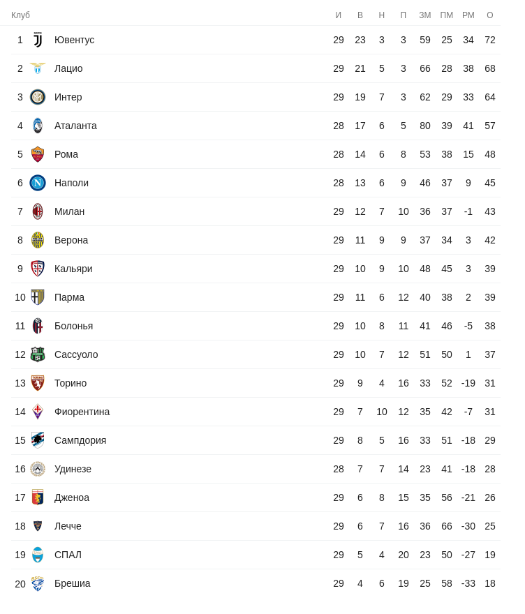 Римская команда встретила возобновление сезона с того, что обыграла генуэзскую «Сампдорию» со счётом 2:1, но в следующем матче, против «Милана» на выезде, проиграла 2:0, из-за чего к 30-му туру её способен догнать неаполитанский «Наполи», у которого сейчас на 3 очка меньше.