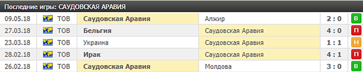 - победа сборной Саудовской Аравии;