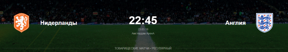 В четверг двадцать третьего марта в 22:45 по московскому времени на «Йохан Кройфф Арене» в Амстердаме, состоится товарищеский матч между национальными сборными Нидерландов и Англии.