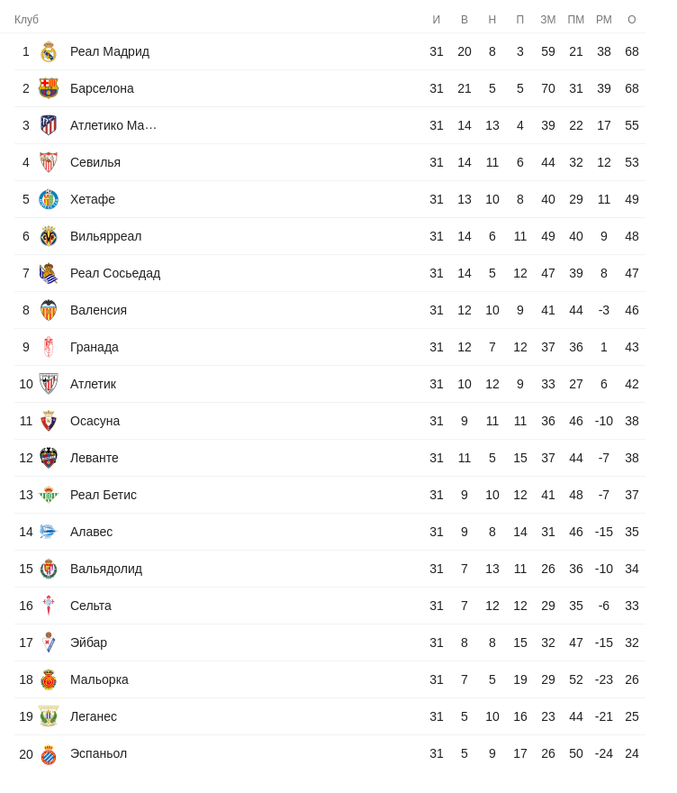 Последний раз команда из одноимённого города проиграла в первой половине февраля. После поражения 2:1 от «Сельты Виго» она успела провести 6 матчей до того, как сезон приостановили, 4 из каких закончила вничью.