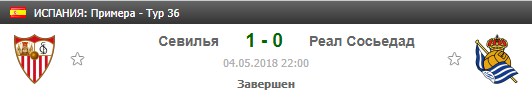 Но этот шаг был вынужденный, так как было видно, что старый рулевой уже упустил нити управления командой, результаты были просто ужасны. И вот при новом тренере севильцы у себя дома принимали не самого простого соперника: «Реал Сосьедад», набравшего хороший ход в последнее время. И этот оппонент был переигран со счетом 1:0.